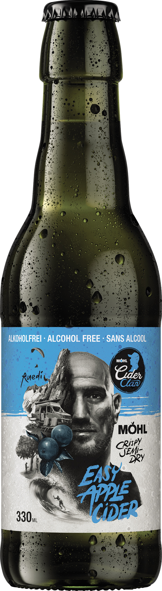 Möhl - Cidre de pommes sans alcool - un cidre d'exception élaboré à partir de pommes suisses du lac de Constance. Frais et demi-sec, il offre une agréable note acidulée de pomme verte. Möhl Cider Clan - le vrai goût du cidre !